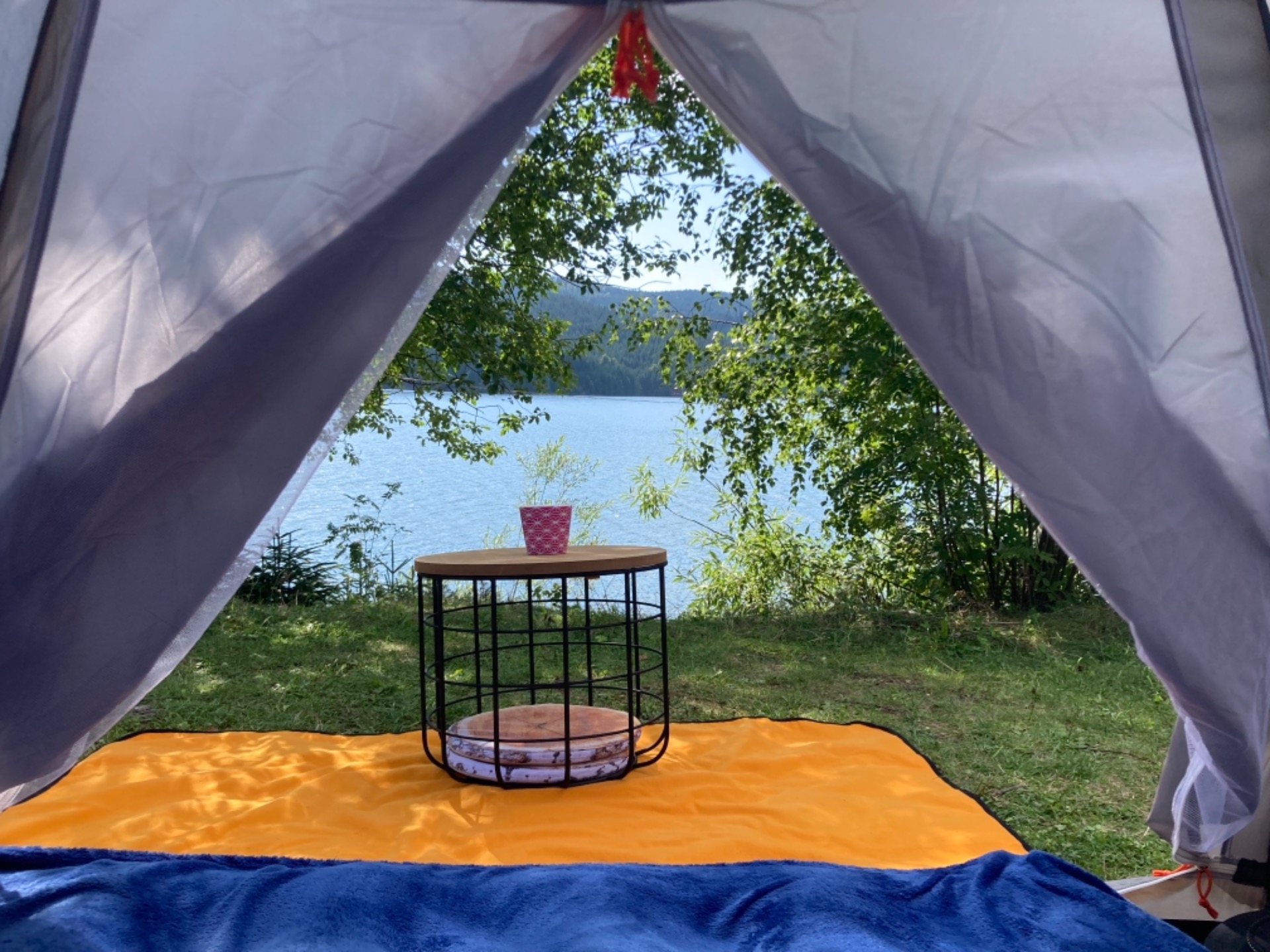 Das war unsere wunderschöne Aussicht vom Zelt aus! Wir sind von Donnerstag bis Samstag geblieben und mussten feststellen, dass es über Nacht bereits deutlich abgekühlt hatte.